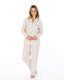 Feel comfort and sophistication in our luxurious Woven Cotton Check and Solid Colour Jersey Top Pyjamas. Crafted from premium cotton and featuring a navy jersey top with long sleeves, subtle gathers to the round neck, finished with tartan pocket and front neck, and a full tartan cuffed trouser with an elasticated waist, they are the perfect companion for the cooler autumn and winter nights.