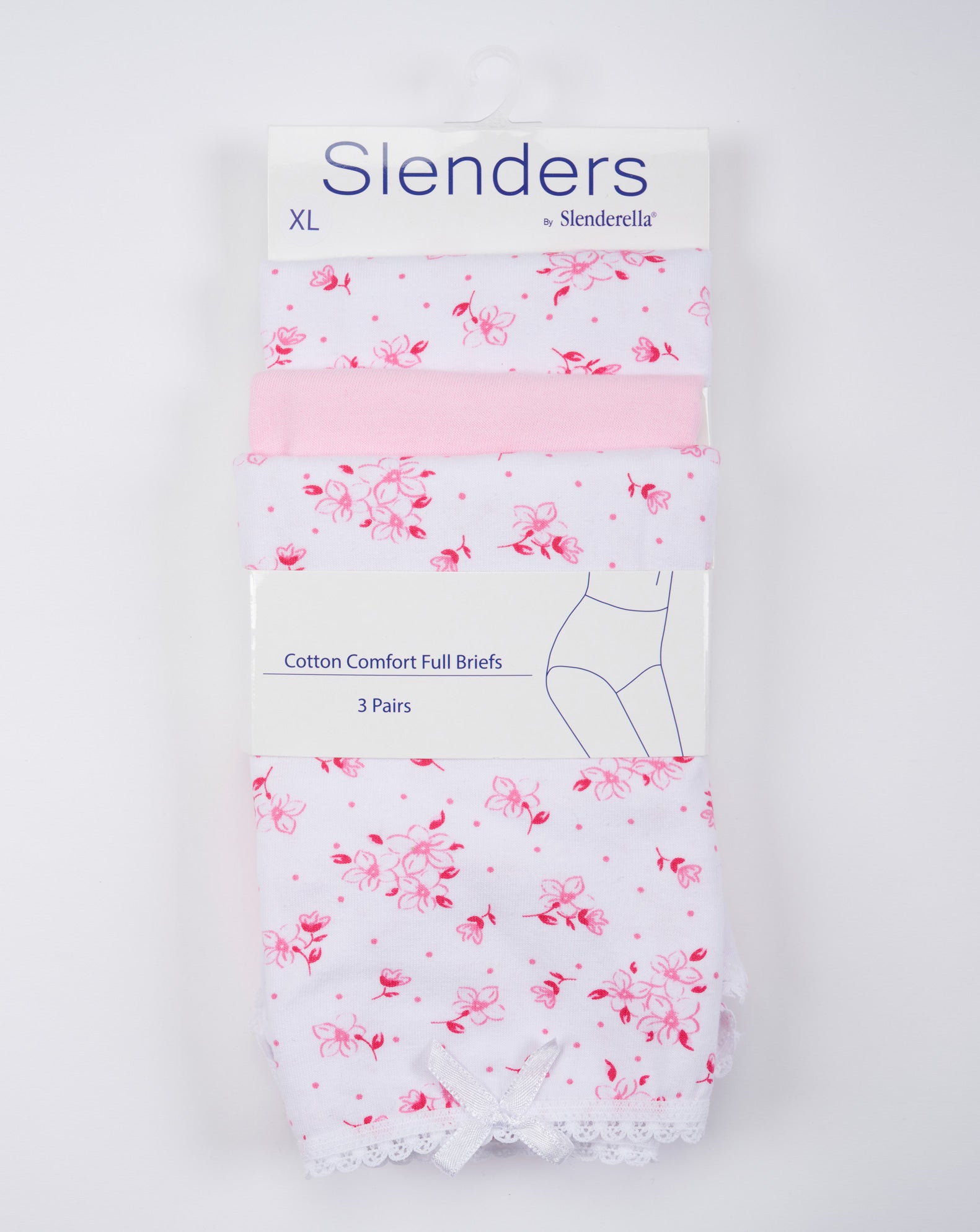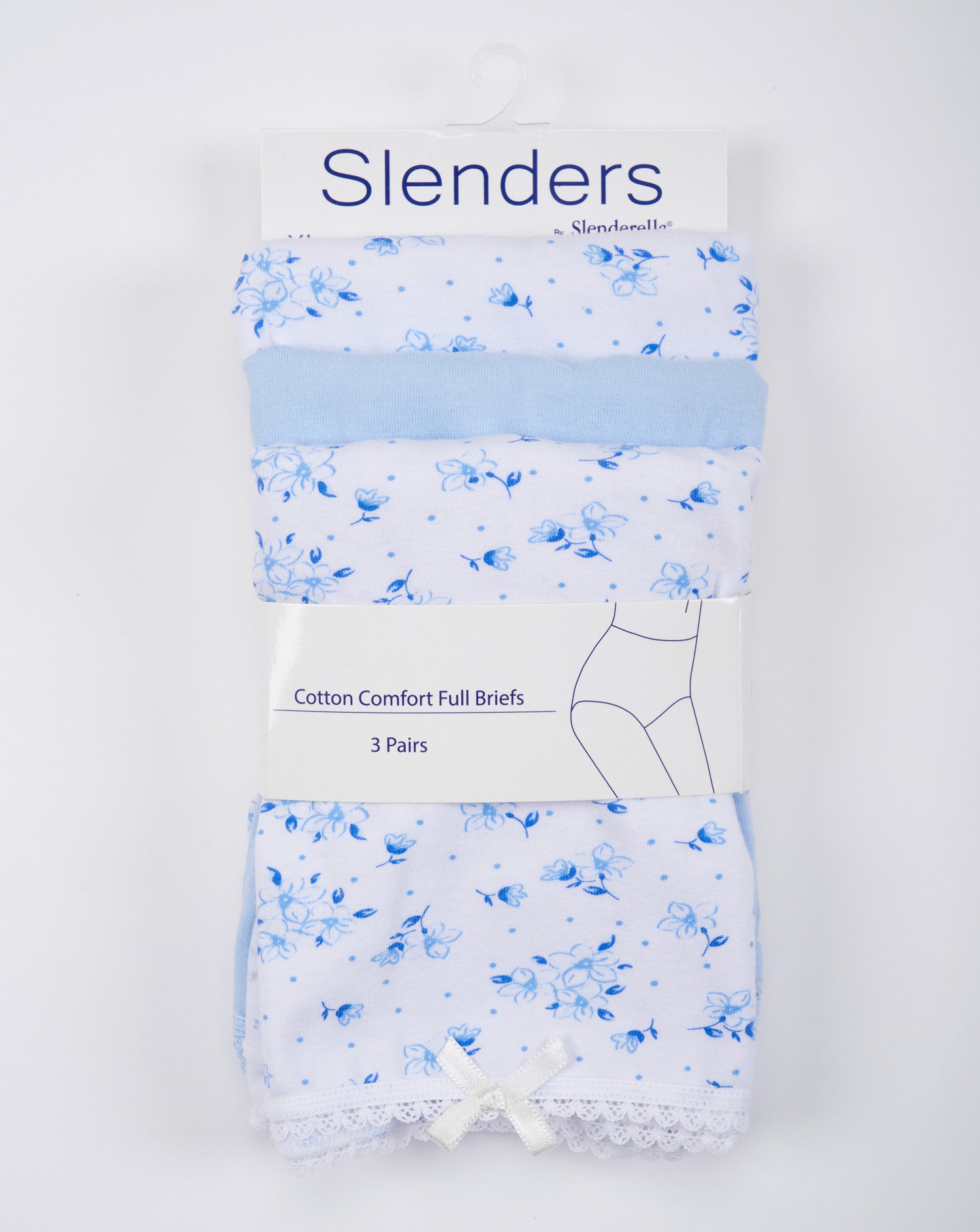 Slenders, by Slenderella. This 3 Pack Cotton Comfort full briefs set comes with two femininely patterned briefs and one plain design. Made in a cotton rich fabric, the briefs have...