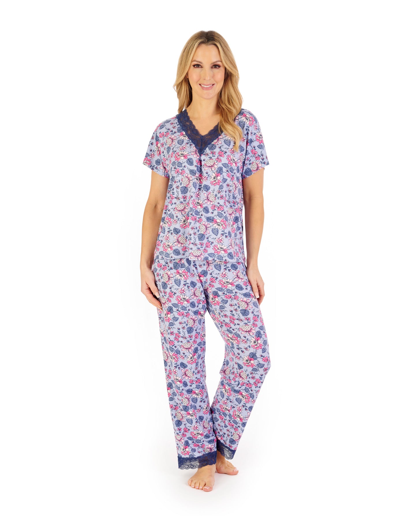 This supersoft pyjama set is made from a brushed material for a soft, comfortable wear. It features a delicate floral print throughout accented with delicate lace trim to neckline and trouser...