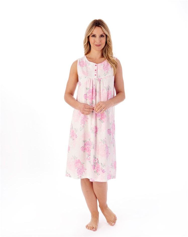 This classic jersey nightdress has an all-over floral print over a solid colour base, finished with a picot trim to the round neck and placket seam. Complete with a round...