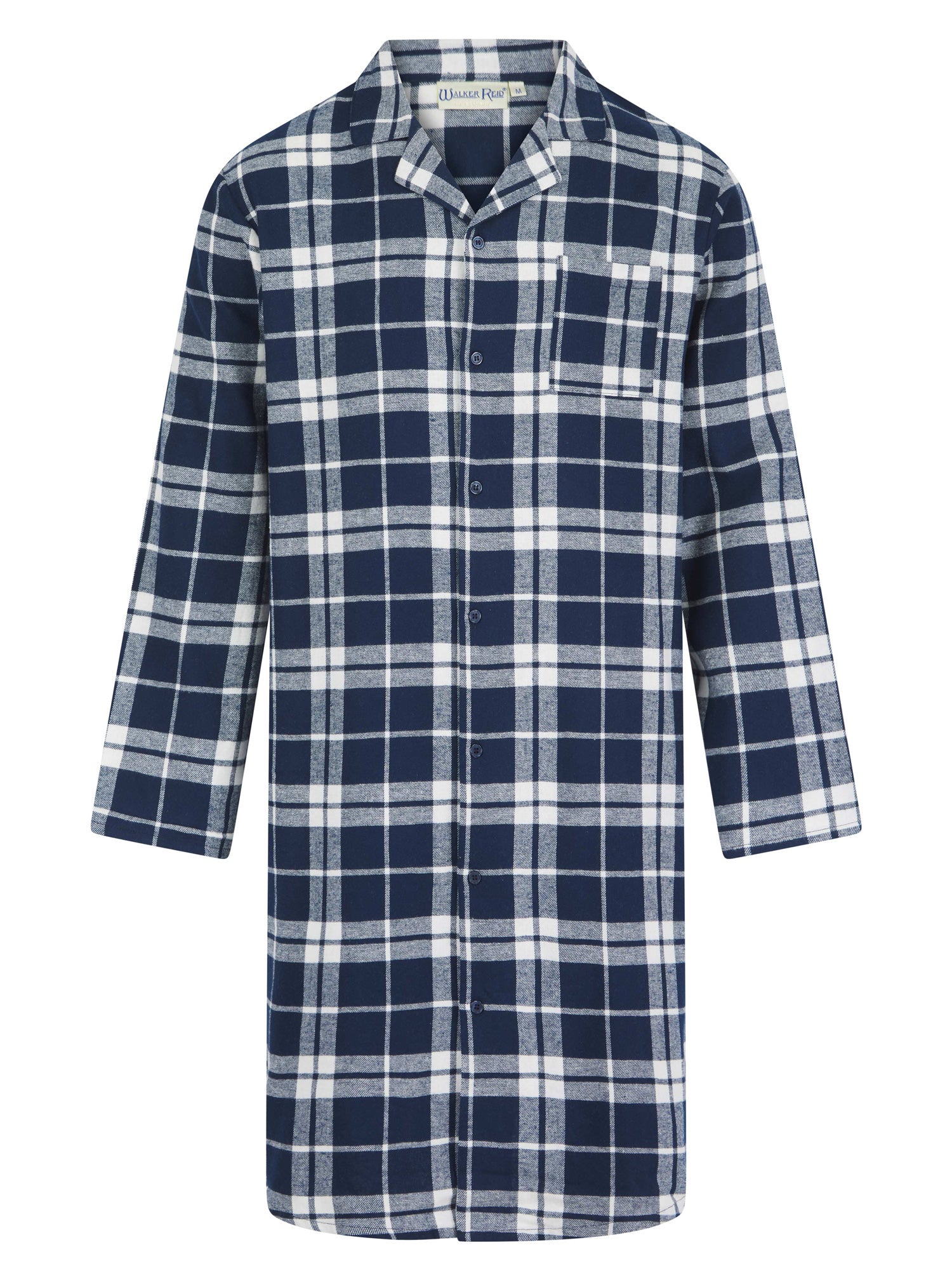 This 100% woven cotton nightshirt features a soft brushed top layer, long sleeve, collar style neck, and matching breast pocket to the left side as worn. With a 7-button through...