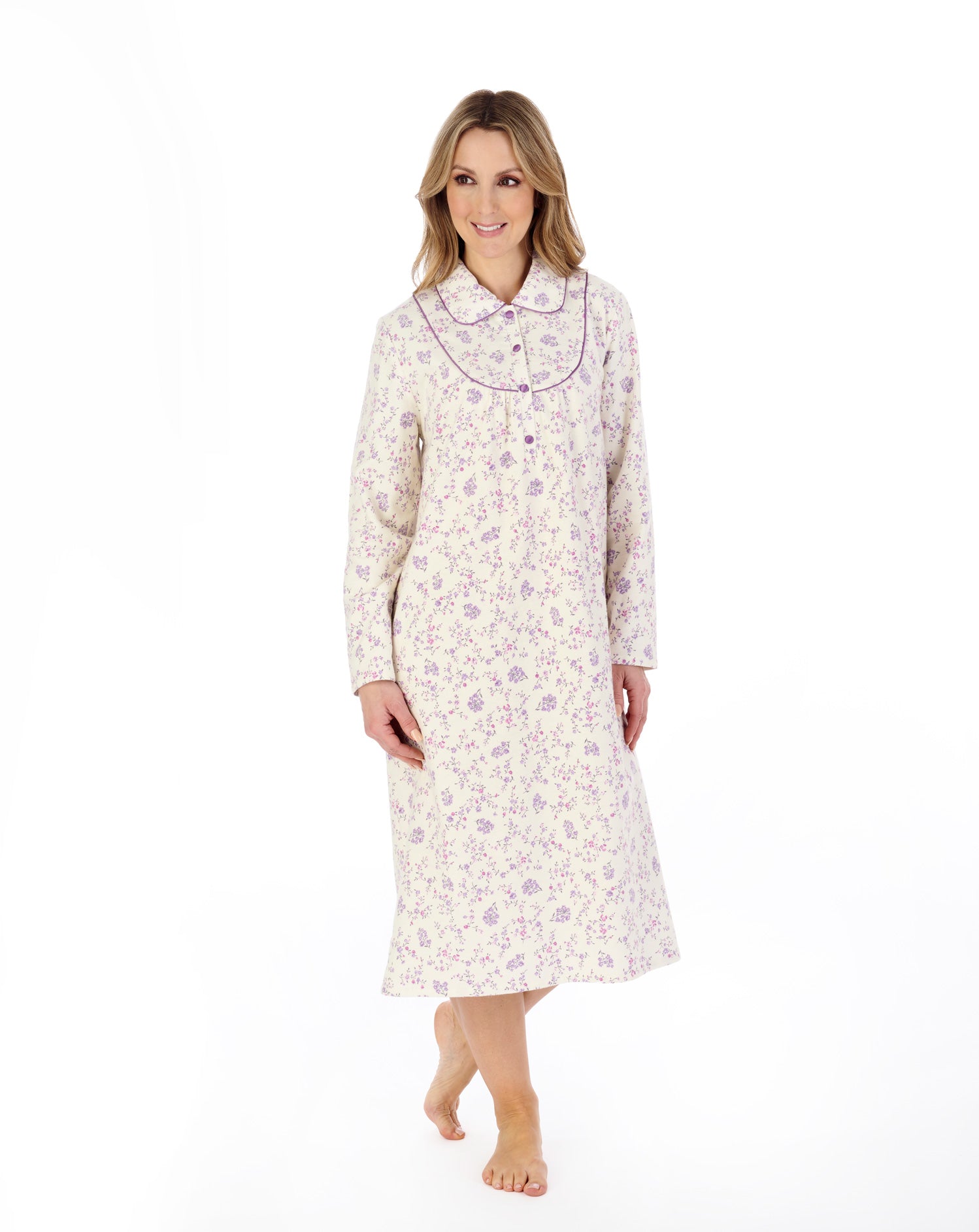 Look no further than this luxurious 45" Floral Printed Nightdress to add glamour to your nightgown collection. Crafted from a sumptuous flannel double brushed cotton fabric, this long sleeve nightdress...