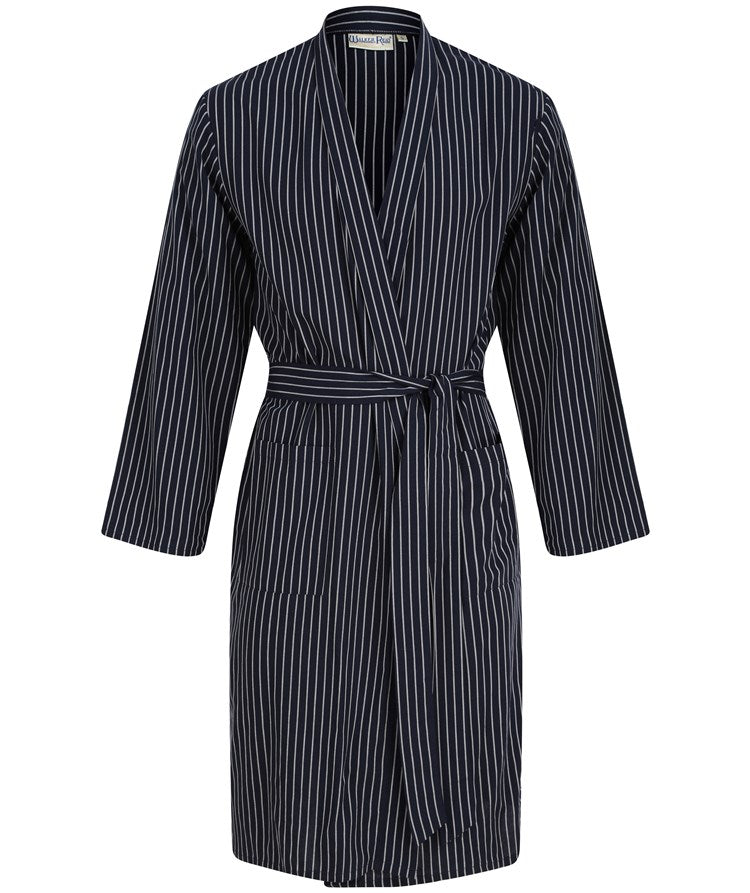 A classic mens kimono designed in a striped woven cotton finished with two patch pockets to the front. A perfect cover up for the colder months. 46" In length Wrap...