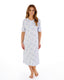 Made from 100% cotton jersey, this 42" nightdress combines breathable comfort with elegant detailing. It features an allover ditsy print, short sleeves, and a round neck accented by solid colour...