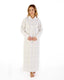 Made from 100% cotton jersey, this 42" nightdress combines breathable comfort with elegant detailing. It features an allover ditsy print, short sleeves, and a round neck accented by solid colour piping. The pintuck detail on the V-yoke and a 4-button placket add subtle sophistication, making it a refined choice for comfortable nightwear.