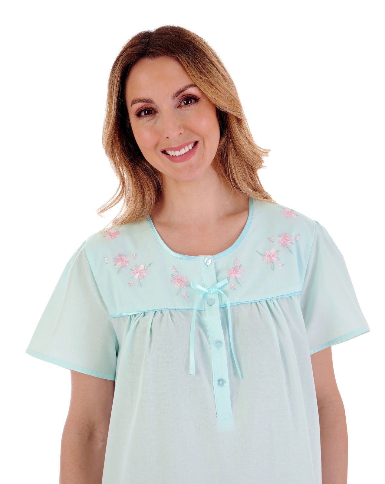 A classic style nightdress designed with short sleeves for comfort. Measuring 42” in length, the nightdress is designed with a 5-button placket to allow ease with dressing. Styled with floral...