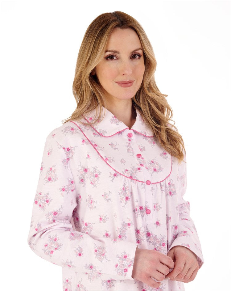 Our Luxury full length flannel nightdress is designed in an all-over solid pale colour with a beautiful deeper coloured floral print throughout. Finished with 4-satin covered button placket to allow...