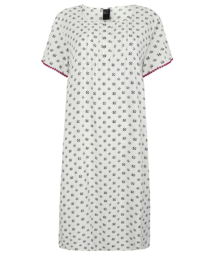 Gaspé Supersoft Geometric Print 42" Nightdress. Made from 100% viscose for a super soft feel, the nightdress is designed with a round neck and short sleeves for comfort. The garment has...