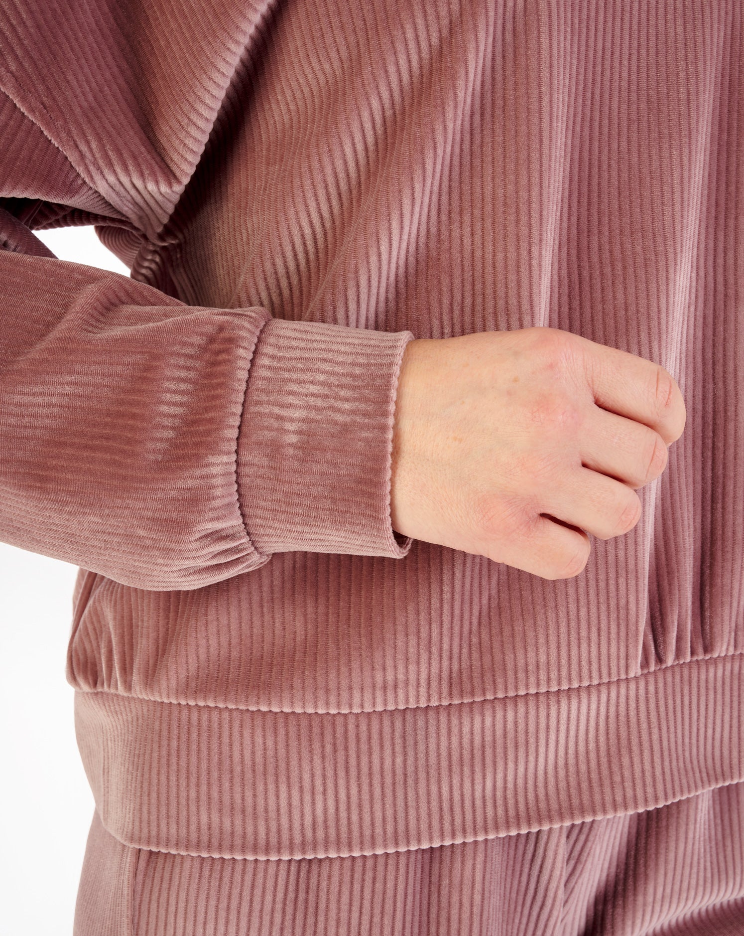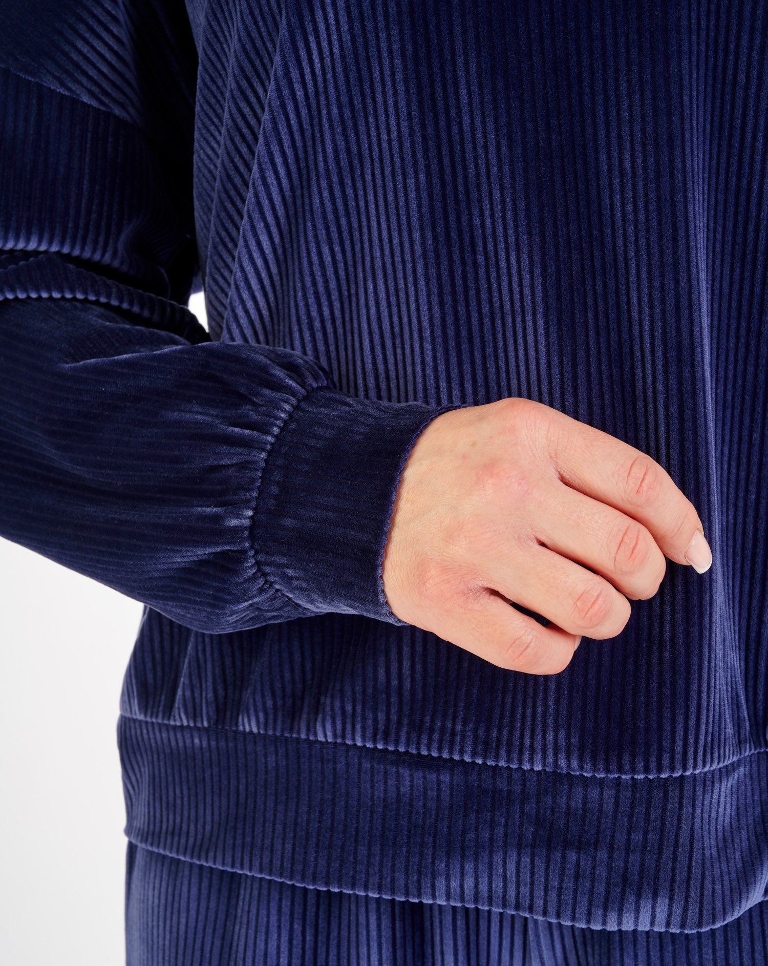 Made with a luxurious velour stripe, this lounge pyjama style boasts a 95% polyester and 5% spandex blend for ultimate comfort. Featuring a long sleeve, cowl neck pyjama top for...