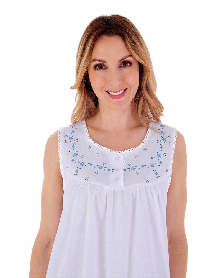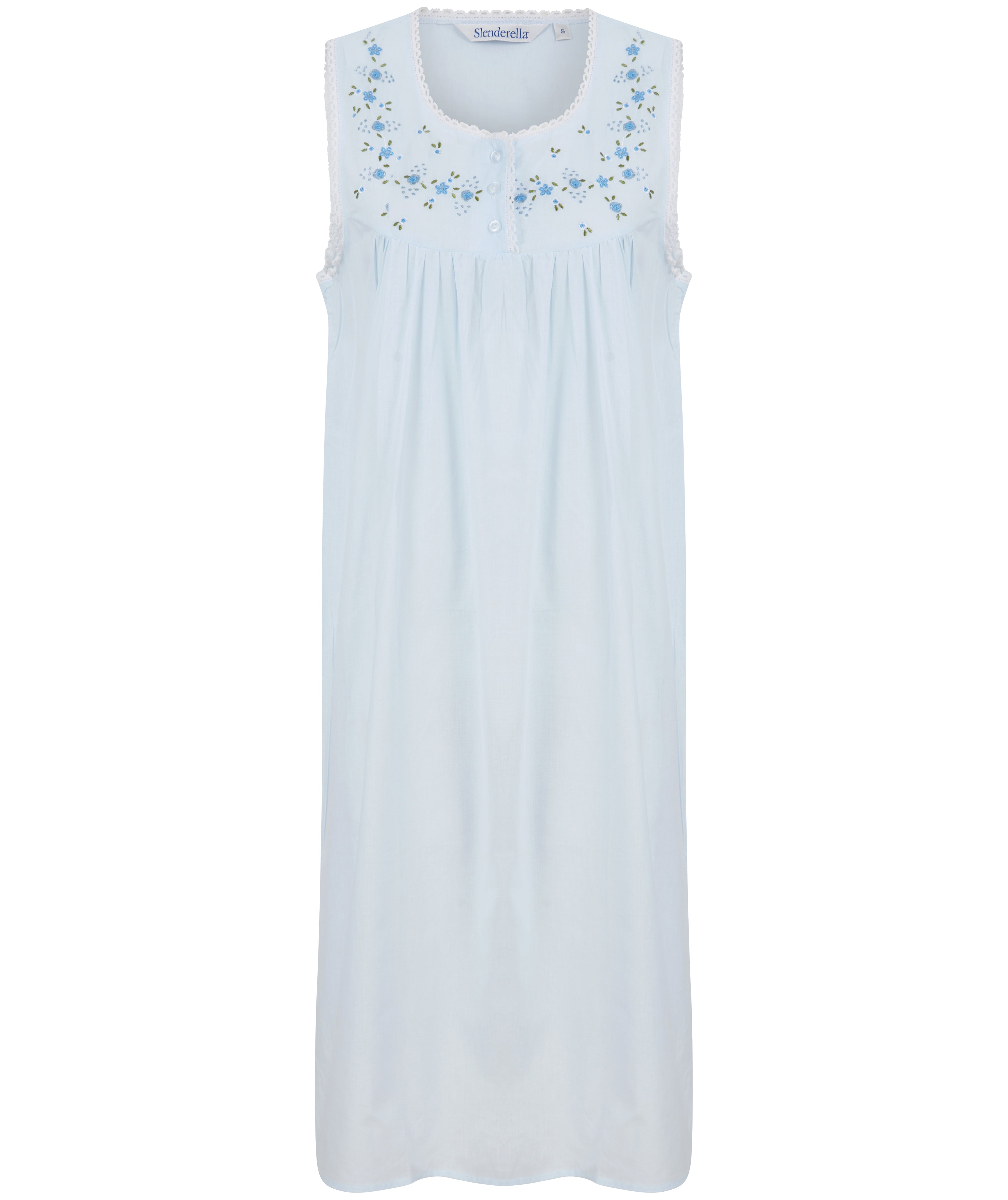 Slenderella Embroidered Yoke Nightdress. Back for Spring 2023 This 40" Slenderella Embroidered Yoke Sleeveless Nightdress is crafted with breathable, lightweight woven 100% cotton for supreme comfort. Perfect for the warm...