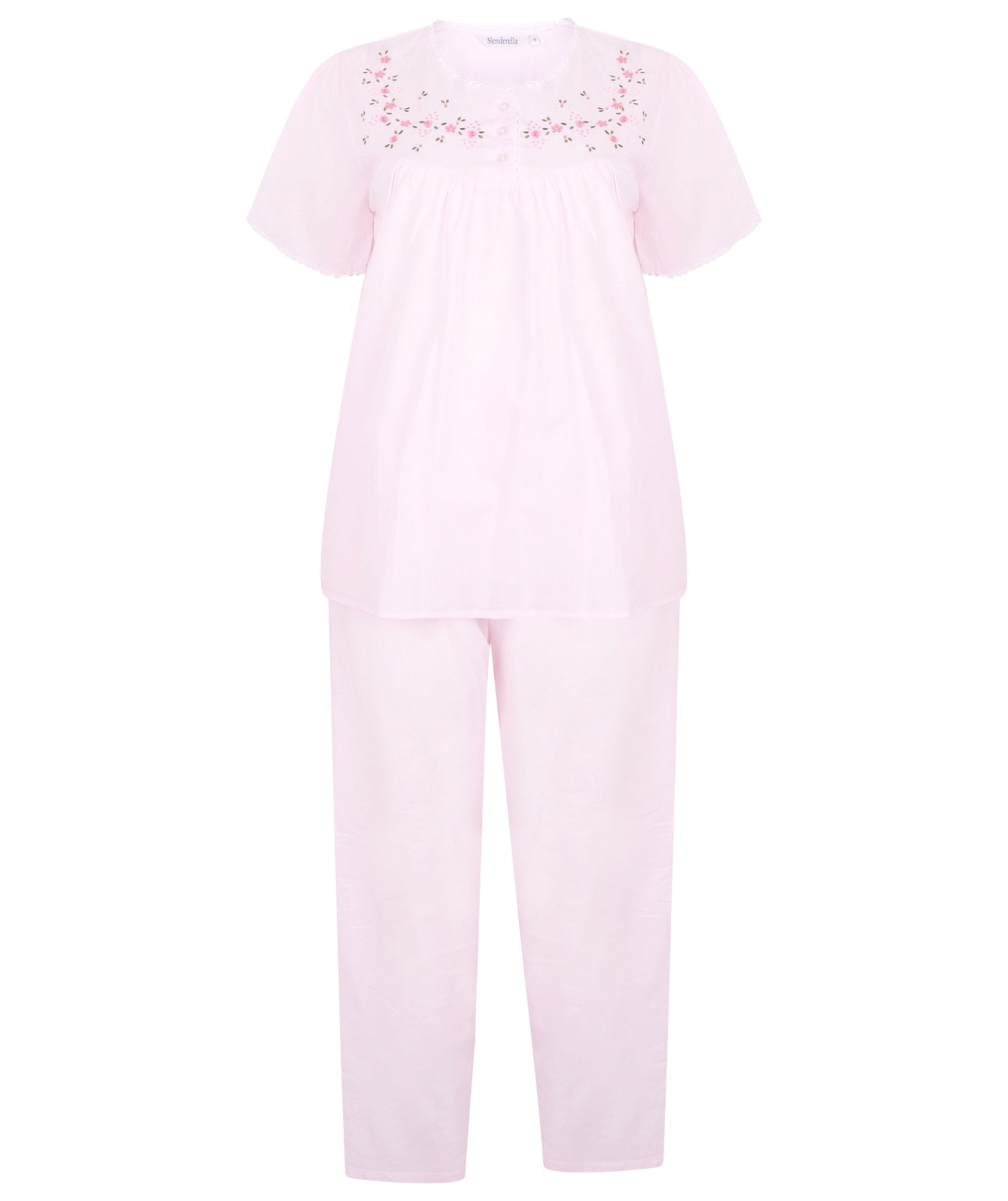 Slenderella Embroidered Yoke Pull On Pyjama Set. Back for Spring 2023 This Slenderella Embroidered Yoke Pyjama Set is crafted with breathable, lightweight woven 100% cotton for supreme comfort. Perfect for...